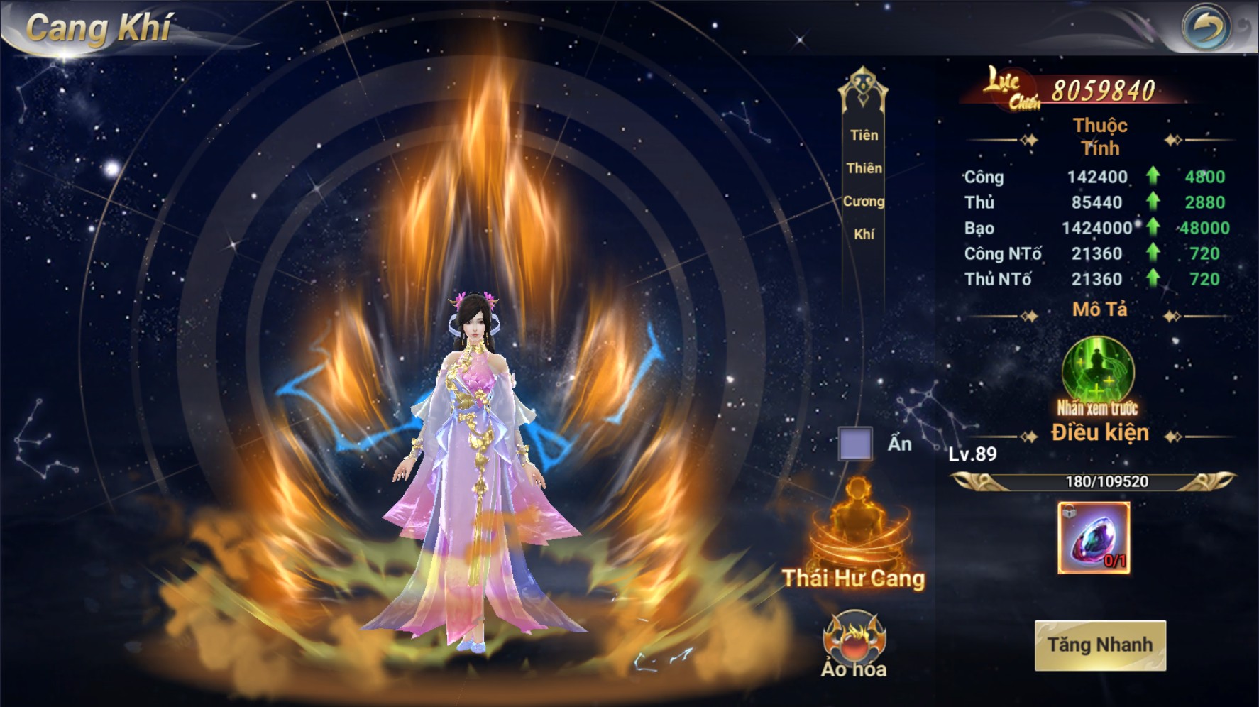 - Cang Khí Lệnh, đạo cụ bản nguyên của Cương Khí Nguyên Lưu, có thể dùng trong [Cang Khí Nguyên Lưu] để kích hoạt phong ấn của Cương Khí Lệnh và Luyện Ngục Huyền Cang. Sau khi kích hoạt sẽ tăng thuộc tính sau: Công, thủ, hp, công nguyên tố, thủ nguyên tố, tăng Lực Chiến.