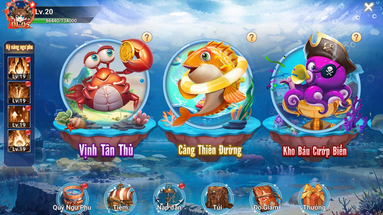 - Sở hữu 4 kỹ năng lớn giúp tăng tốc độ đánh cá, có thể tiếp tục nâng cấp!