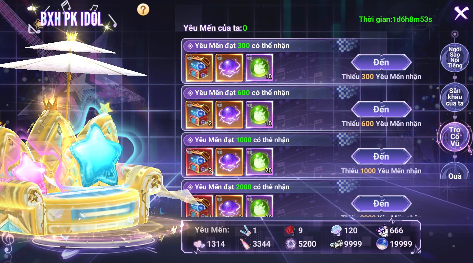 - Tặng quà có thể tăng điểm Thần Tượng cho cả bản thân và đối phương.
