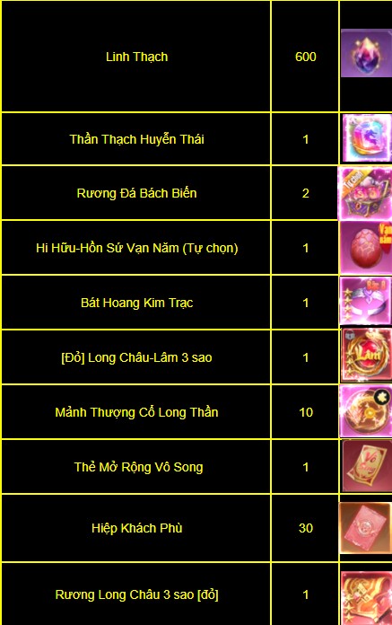 Ví dụ: Tiên Hữu đạt Hạng 1 và chiến lực sở hữu đạt chỉ thỏa mãn điều kiện ở hạng 2, Tiên Hữu sẽ nhận quà Hạng 2 thay vì quà Hạng 1.