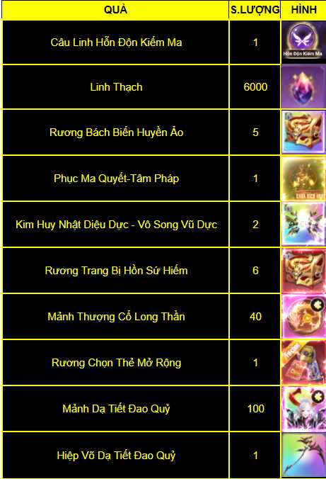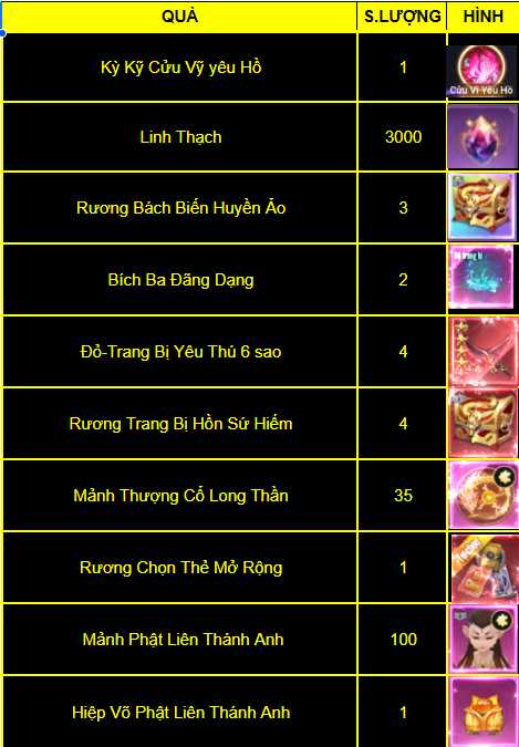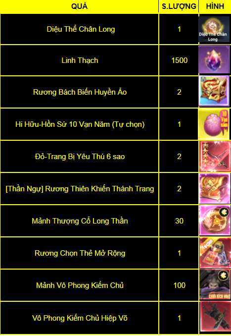 ♦️Quà Ingame sẽ được gửi qua thư sau khi sự kiện kết thúc (tối đa 72h).