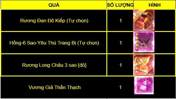 Quà sẽ chỉ gửi vào một nhân vật thuộc 1 máy chủ thực hiện giao dịch nạp thuộc 1 tài khoản. Không giải quyết các trường hợp gửi vào nhân vật khác.