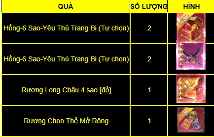 Tiên hữu đạt tổng nạp 500.000 Tiên Hữu sẽ nhận tất cả 3 mốc quà