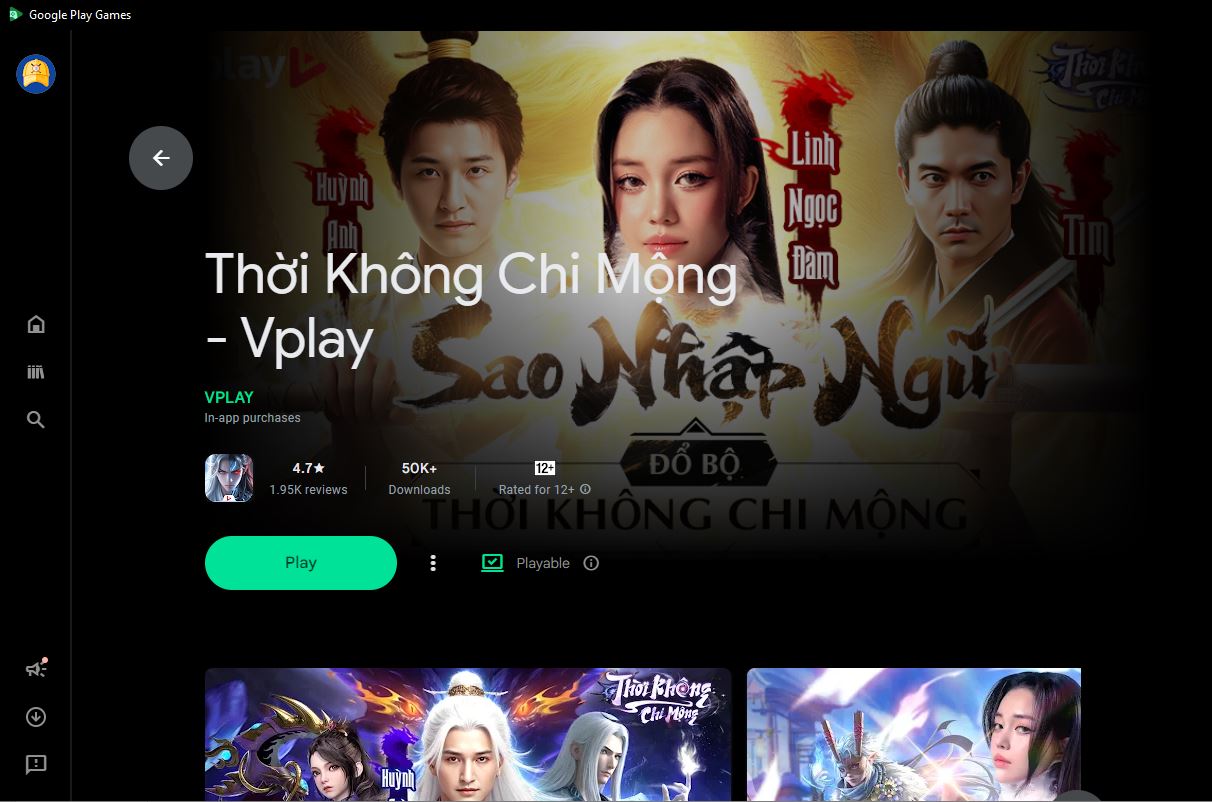 Mộng Nhi sẽ hướng dẫn Tiên Hữu cài đặt game Thời Không Chi Mộng trên máy tính thông qua ứng dụng Google Play Games. Thông qua đó việc chơi Thời Không Chi Mộng trên máy tính trở nên dễ dàng và thuận tiện hơn.