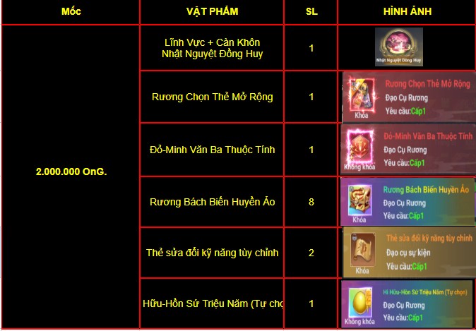 🎁🧨 Mốc 1: 2.000.000 OnG trở lên