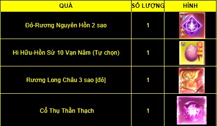 => Mỗi Tiên Hữu chỉ nhận được 1 mốc quà