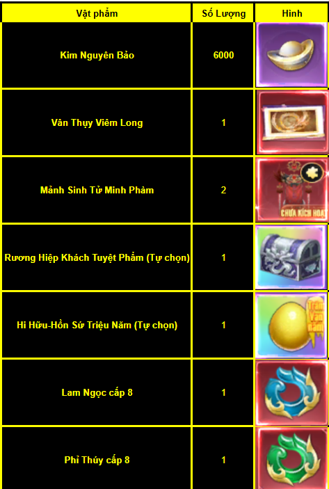 🏮Quà sẽ chỉ gửi vào một nhân vật thuộc 1 máy chủ thực hiện giao dịch nạp thuộc 1 tài khoản. Không giải quyết các trường hợp gửi vào nhân vật khác